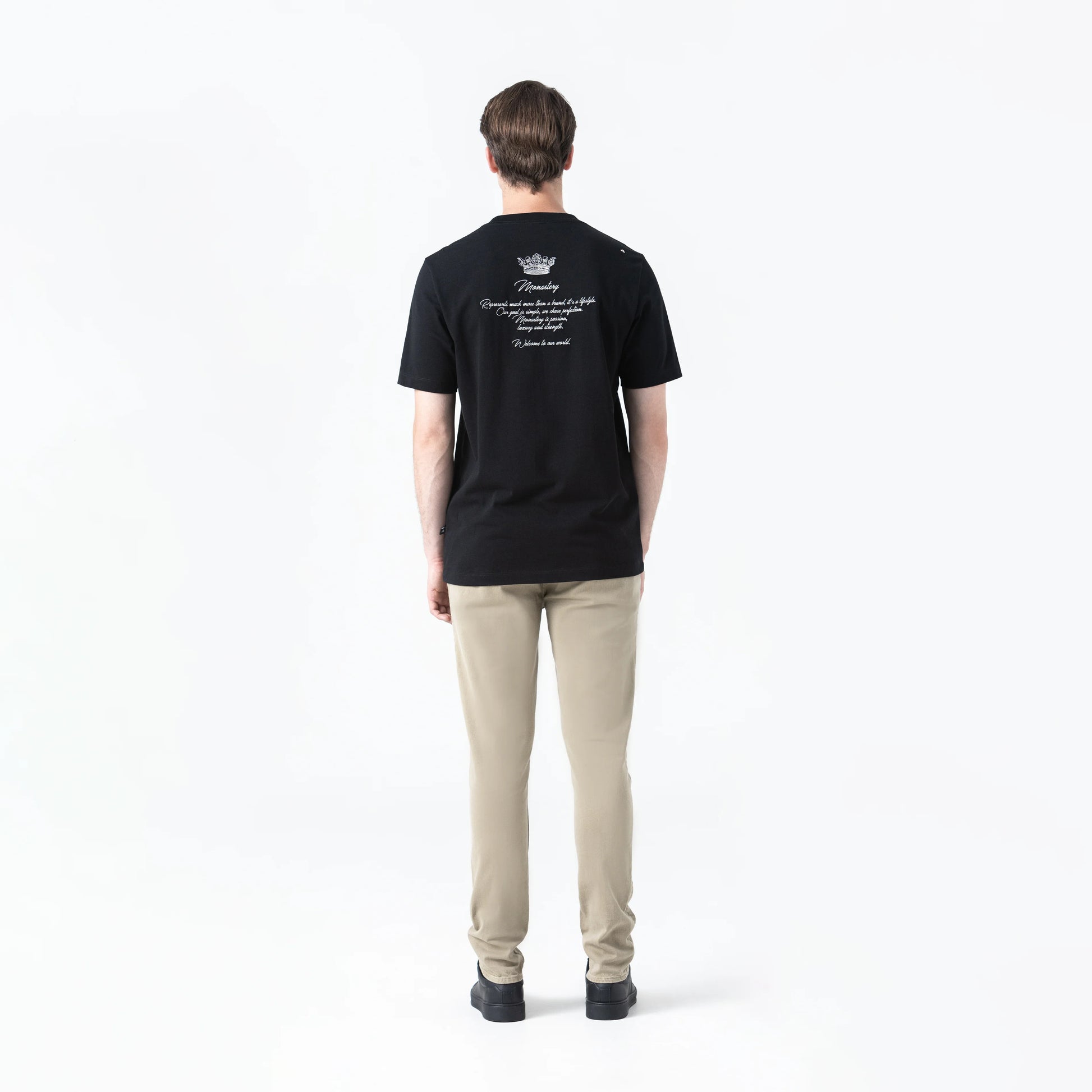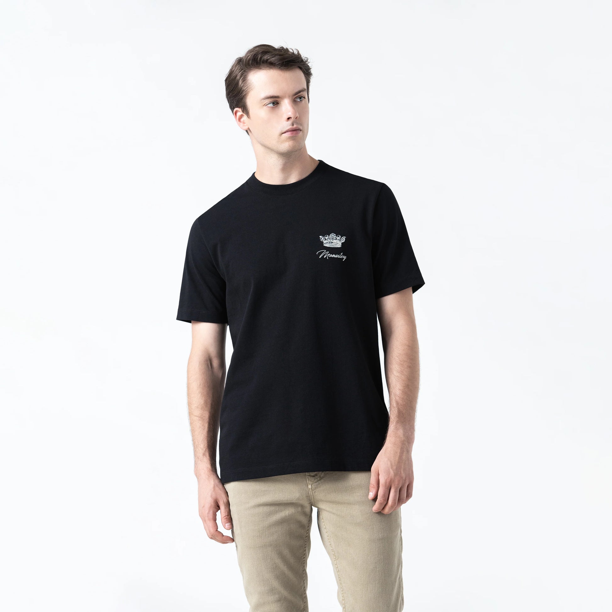 Camiseta de hombre en 100% algodón exclusivamente para Monastery, hecha a mano en un ajuste regular con un escote de 2,5 cm, con obras de arte de la corona con el logotipo del Monastery en una puntada de corazón de costura plana y obra de arte de Monastery The King en la espalda utilizando una técnica de puntada plana de alta densidad. Warsel es una prenda con un arte icónico renovado, lo que hace que este artículo sea fácilmente reconocible y muy versátil para combinar con su guardarropa.